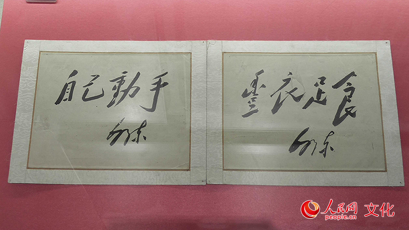毛泽东“自己动手”、“丰衣足食"题字,现藏于中国军事博物馆。人民网 孟丽媛 摄