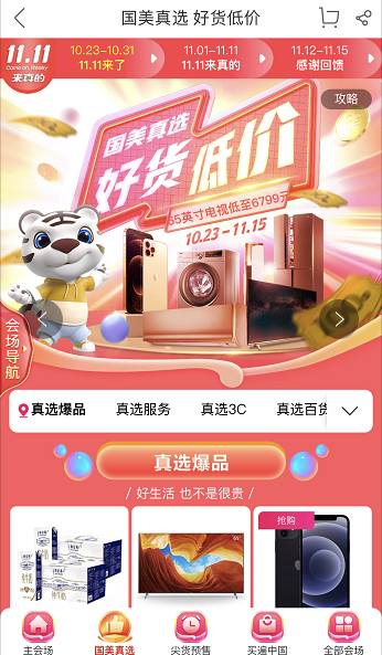 此前,国美先后推出“真选”系列产品、空调“十免”服务、九九会员专属权益……实现了11.11大促期间产品与服务的双重升级。