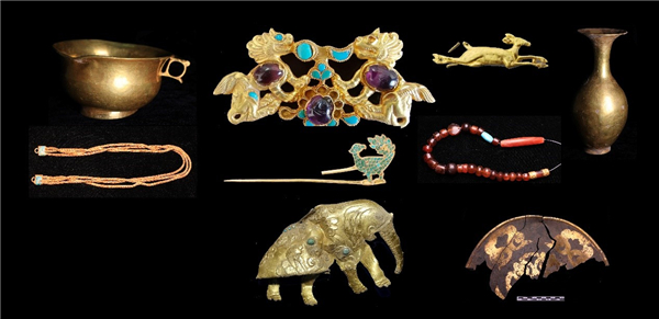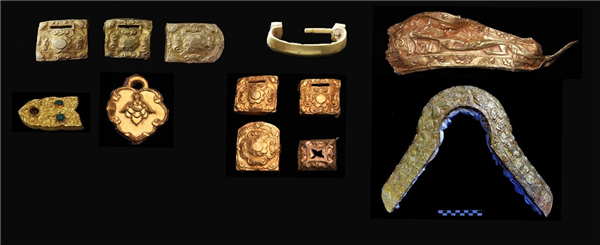 经过勘探发掘,墓内出土金银器、铜器、铁器、漆木器、皮革、玉石器、玻璃器及纺织品等各类文物1000余件,整体涉及中原、吐蕃、西域、中亚等地区的文化因素,初步推断该墓的时代在8世纪中期左右。