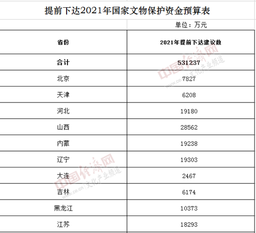 为提高预算完整性,加快支出进度,经研究,现提前下达2021年国家文物保护资金(项目代码:Z135050009036,收入列2021年政府收支分类科目“1100247文化旅游体育与传媒共同财政事权转移支付收入”,支出列“207文化旅游体育与传媒支出”),用于文物保护项目的文物维修保护、文物安防、消防及防雷等支出,具体项目名称和金额详见附件。重点项目预算评审结果见国家文物保护资金项目库。