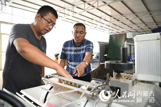 自动育种机前,急性子的李宏正在指导儿子调整机械的方法。